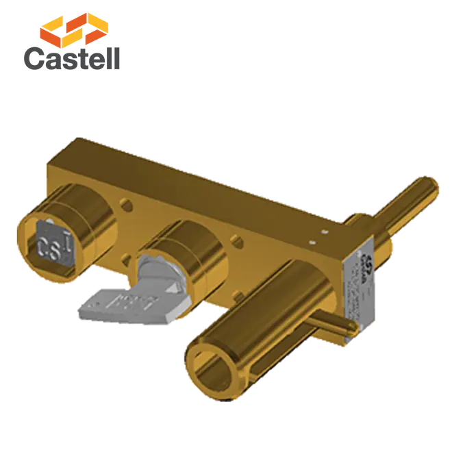 KLE 双钥匙滑动门联锁装置是一体式门禁联锁装置,由主体和滑动锁栓组成。该锁的设计适合各种尺寸和厚度的滑动门。该联锁装置由黄铜制成,并配有黄铜 FS 或 Q 型锁芯,非常适合在干燥、无腐蚀的环境中使用。使用 KLE 锁的典型行业是汽车和钢铁生产。 KLE 门禁联锁装置可提供双钥匙或交换钥匙状态。