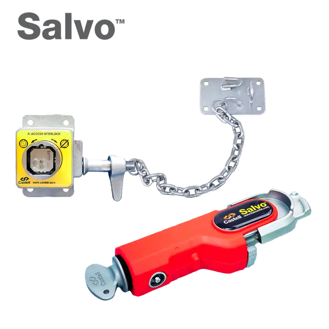 SML 手动门装卸平台安全系统包含安装在平台门内侧或平台门导轨上的手动门锁 (SMDL)。 Salvo Gladhand (SGL) 用于锁定拖车的空气制动器,释放钥匙。然后将钥匙取出并插入 SMDL,从而可以移除短锁栓并打开门。钥匙被截留在 SMDL 中,直到平台门关闭,允许短锁栓重新插入 SMDL,从而释放钥匙。然后可以将钥匙带回卡车,插入 SGL,重新连接空气制动器,卡车安全行驶。